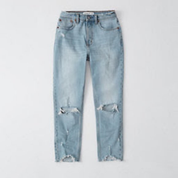 NEW - Lightly worn, high-rise ankle mom jeans from Abercrombie, size 29s. Very trendy, loose-fitting, straight leg jeans