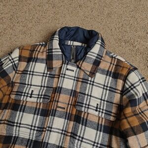 Abercrombie Jacket Mens Medium Brown Plaid Full Zip Outdoors Wool Puffer Coat