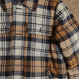 Keywords: Plaid jacket, Flannel jacket, Mens shirt jacket, Brown plaid coat, White plaid coat, Checkered jacket, Lined jacket, Mens outerwear, Casual jacket, Fall jacket, Winter jacket, Wool blend jacket, Button up jacket, Plaid coat