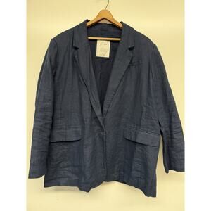 Abercrombie Jacket Womens XL Navy Blue Blazer A&F Linen Collection Oversized NEW