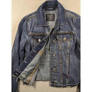 Abercrombie Jean Jacket Womans X-Small Blue Button Closure Distressed EUC