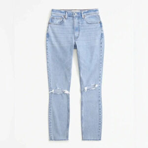 Abercrombie Jeans Light Wash Skinny High Rise Curve Love Petite short distressed