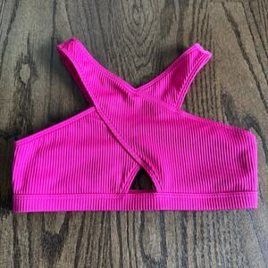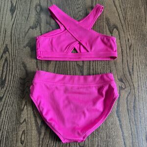 Abercrombie Kid Girls Hot Pink Ribbed 2PC Criss Cross Bikini Swim Suit Size 9/10