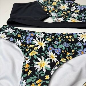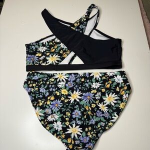 Abercrombie Kids Black and Floral 2 Piece Bikini Swim Set Size 15/16