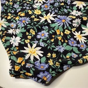 Stylish black bikini with floral print. Features daisies in white, yellow, and purple. Comfortable fit.