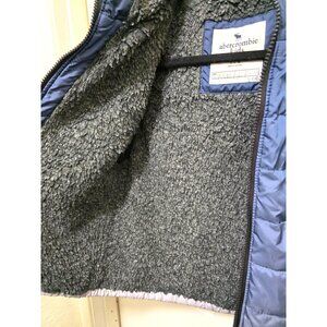 This stylish puffer jacket by Abercrombie Kids features a practical hood and a unique blue gradient design. It's lightweight and suitable for cooler weather.