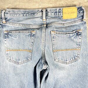 Classic Abercrombie Kids straight leg blue jeans in a durable 100% cotton denim. Medium wash, five-pocket design, button and zip fly closure. Great everyday pair for casual wear or school outfits.