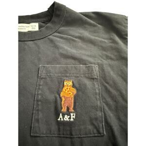 Abercrombie Kids Boys Black Relaxed Fit Tshirt Embroidered Bear Pizza 13/14