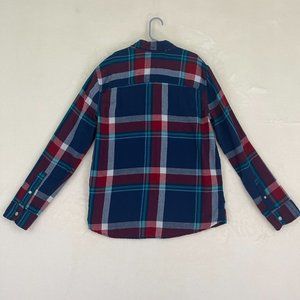 Abercrombie Kids Boys Flannel Shirt Size 13-14 Red Blue White Plaid Long Sleeve