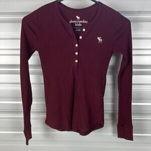 Stylish burgundy ribbed top by Abercrombie Kids. Features button accents.