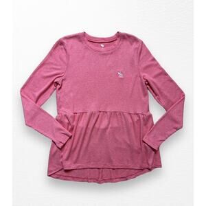 Fine knit sweater tunic from Abercrombie Kids in size 15/16. Flowy and lightweight with a peplum hem, made from 74% viscose. Pretty coral pink shade.