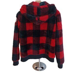 Abercrombie Kids Furry Full Zip Hoodie Red Black Buffalo Plaid Girls 13/14 EUC