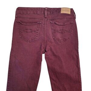 Abercrombie Kids Girls 16 Slim Stretch Jeans Jegging in Bergundy Red, featuring a comfortable fit with stylish faded knees, perfect for casual wear and versatile styling.