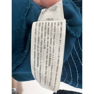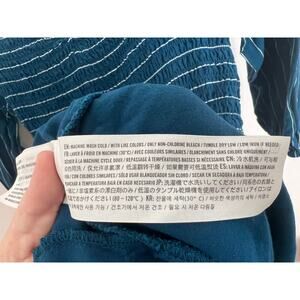 Abercrombie Kids girls dress, size 11/12. Teal blue with vertical white stripes, smocked bodice, scoop neckline, and 3/4 elastic sleeves. Lightweight woven viscose fabric with lining for comfort. Approx. 26.25” shoulder to hem. Perfect peasant-style casual or boho look that can be worn with sandals in summer or layered with boots and leggings for cooler weather.