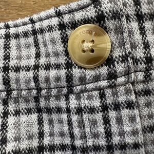 White/Black/Gray Plaid Pattern with non-functional button accent