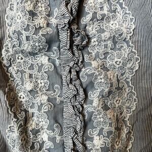 Abercrombie & Fitch girl's size small 8 navy and white pinstriped gypsy blouse with white floral lace overlay. In excellent condition from a smoke free home.