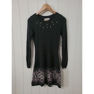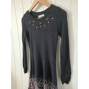 Abercrombie Kids Girls Sweater Dress 15/16 Dark Gray Embellished Knit Long Sleeve
