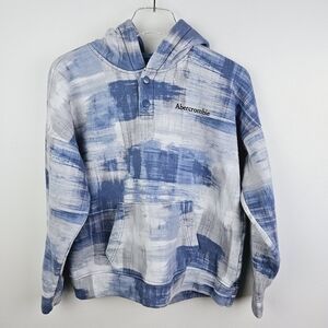 Abercrombie Kids Hooded Cotton Blend Sweatshirt - Blue, White, Gray