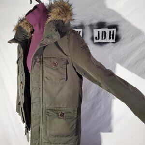 Abercrombie Kids Olive Green Coat with Faux Fur Lining Sz 11/12 -read desc