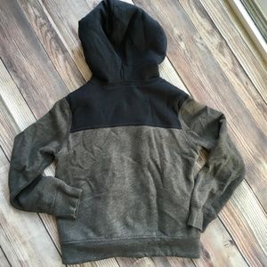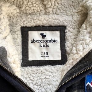 Size 7/8 Abercrombie Kids sherpa lined hoodie in navy and gray. It is in gently used condition.