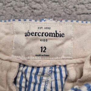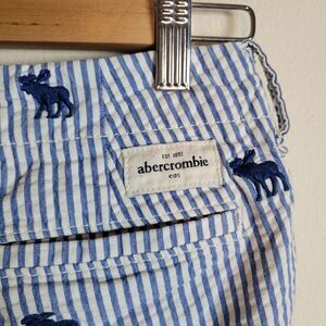Abercrombie Kids Shorts 12 Blue White Stripes Seersucker Moose Print Chino