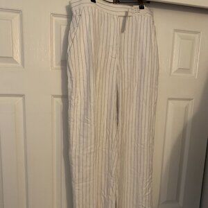 Abercrombie Linen-Blend Tailored Straight Pant White Stripes NWT M