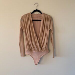 Amazing, like new condition. Thong bodysuit. Draped front - can be sewn closed or safety pinned to create a more modest neckline. Perfect with a strong pair of jeans or a super fun skirt for the holidays, parties, special occasions...