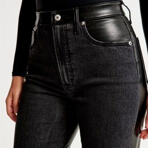 Abercrombie Mixed Fabric Black Gray Leather Ultra High Rise Straight Jean 25/0