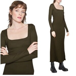 Abercrombie - NWT Square Neck Ribbed Maxi Dress Olive Green Sz M