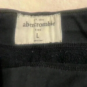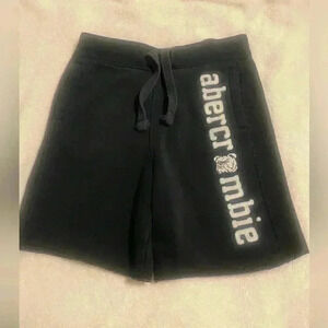 Abercrombie Navy shorts with elastic waist & drawstring has two front pockets & one back pocket. There is a small spot on back pocket. Logo is on front left leg. 70% cotton 30% poly