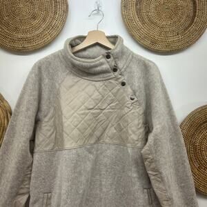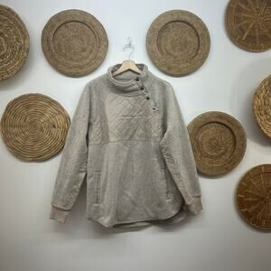 Abercrombie Neutral Brown Tan Quilted Fleece Button Pullover Sweatshirt Large