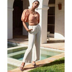 Abercrombie O-Ring Puff Sleeve Sweetheart Neck Smocked Cropped Blouse Top Small