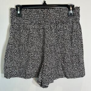 Abercrombie pull on tie waist shorts. Black printed material. Smocked waistband.