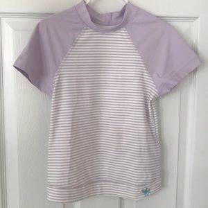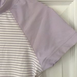 Light purple and white stripes; light purple sleeves