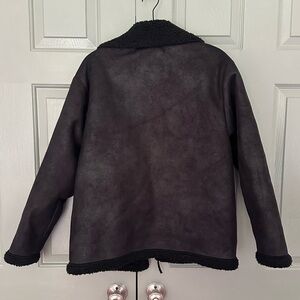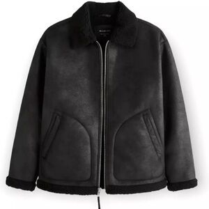 Abercrombie Relaxed Vegan Suede Aviator Jacket Black