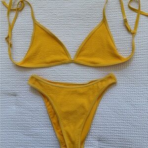 Dive into summer with this vibrant yellow ribbed bikini set. Perfect for beach days and poolside lounging.