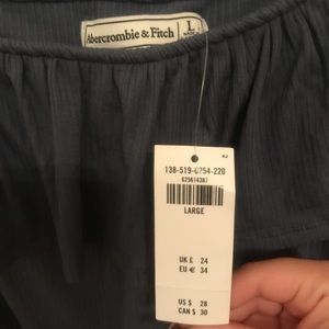 Abercrombie and Fitch ribbed, off-the-shoulder, ruffle body suit in blue, size Large