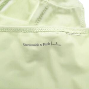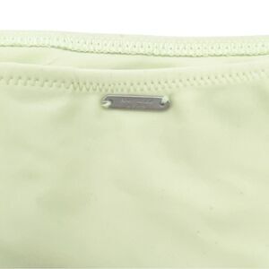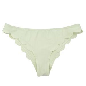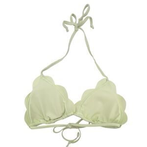 Stylish and flirty, this Abercrombie & Fitch scallop bikini set features a soft light green hue with scalloped edging for a chic, feminine finish. The triangle top has adjustable ties at the neck and back for a customizable fit, while the matching bottoms offer moderate coverage with the same scalloped detail.