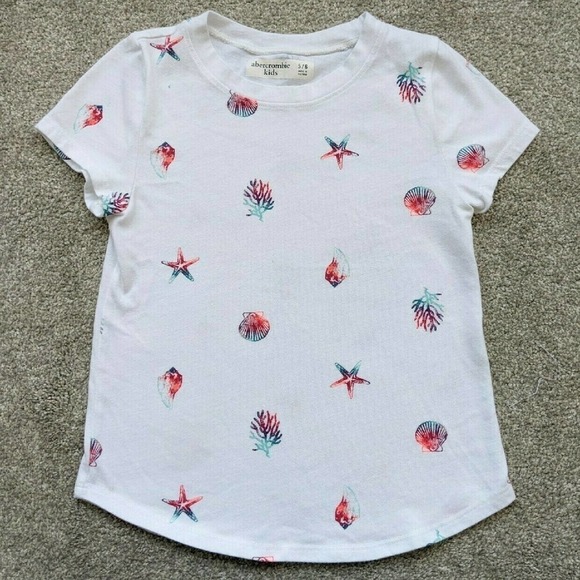 Seashells in #redwhiteandblue on super soft tee. Worn once before outgrown. There are speckles that look the same color, so I can't tell if they're spots my child put there or if they're part of the print. Faint spots also on botton front as shown. Check photos to make sure it works for you! Smoke, pet, and fragrance free shop. Bundle to save on shipping! BIN52207G16 #abercrombie #redwhiteandblue #redwhiteblue #stripes #floral #patriotic #fourthofjuly #america #americana #starsandstripes #july4th #4thofjuly #seashells #coastal #nautical #beachvibes #vacay