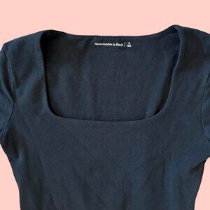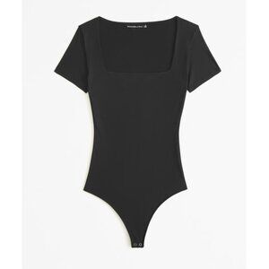 Abercrombie Short-Sleeve Cotton Seamless Squareneck Bodysuit, Black, Size Small