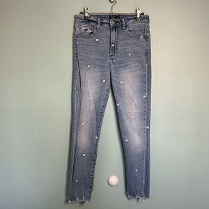 Abercrombie Simone High Rise Ankle Embroidered Flower Jeans