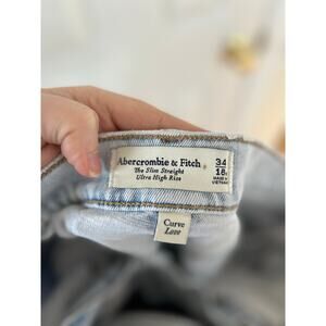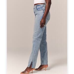 Abercrombie Slim Straight Ultra High Rise Curve Love Light Wash Split Hem Jean
