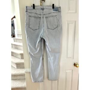 Excellent condition. Light wash, straight leg ultra high rise jeans. Split at leg hem.
