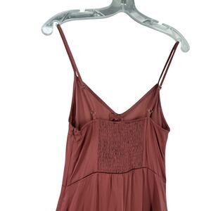 Abercrombie Satin Slip Dress Mini Length XS Mauve Pink Button Front Spaghetti Strap Smocked Back Panel