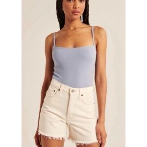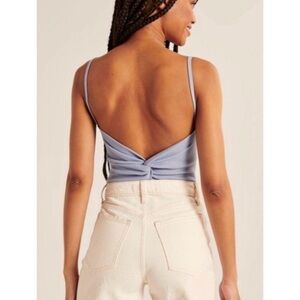 Abercrombie Soft A&F Rib Stretch Baby Blue Twist Back Thong Bodysuit Size L