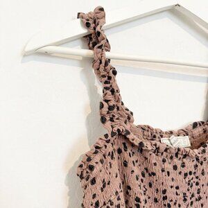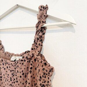 Abercrombie Square Neck Smocked Lettuce Trim Spotted Tank Top Boho Casual Size X