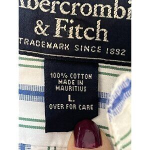 Abercrombie Striped Shirt L Green Preppy Y2K Embroidery Classic Academia Retro