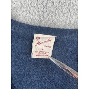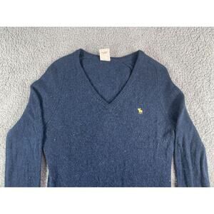 Abercrombie Sweater Womens Large Lambs Wool Blue Vintage Long Sleeve V-Neck Logo