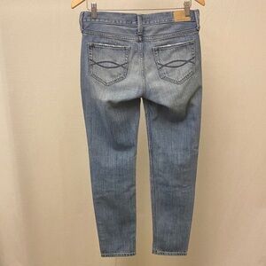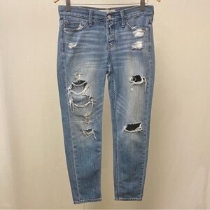 Abercrombie & Fitch A&F Size 00 Ripped Front Boyfriend Jeans, Mid Rise, Button Fly, Distressed, Non-Stretch. Preowned. Heavily distressed / ripped. Waist measures approx 30”. Inseam measures approx 26”. Rise measures approx 8.75”.