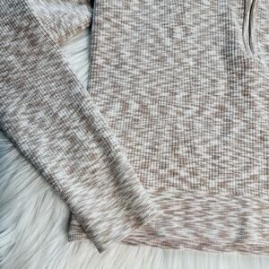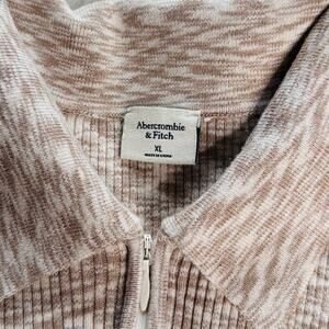 Tan and White Abercrombie 1/2 Zip Cropped Sweater